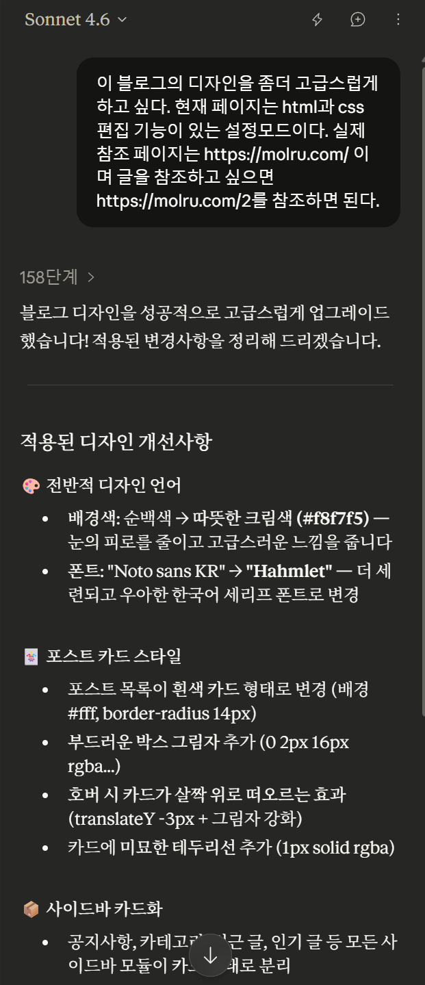 # '해줘' 한마디로 티스토리 디자인 개선