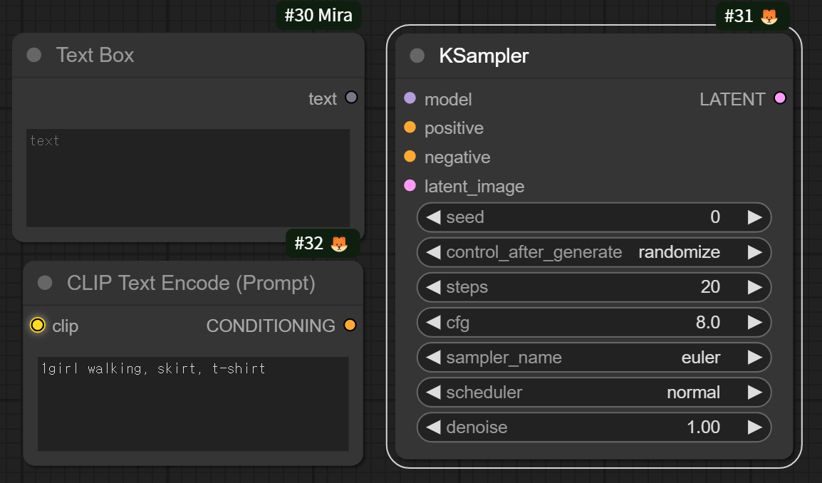 이와 같이 Load Checkpoint 노드에서 바로 노란색 단자를 빼서 사용하면 된다